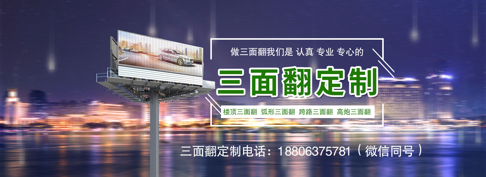 隨著三面翻廣告市場(chǎng)用戶(hù)的理性化發(fā)展,越來(lái)越多的用戶(hù)在選購(gòu)三面翻廣告設(shè)備的時(shí)候,開(kāi)始著重三面翻…